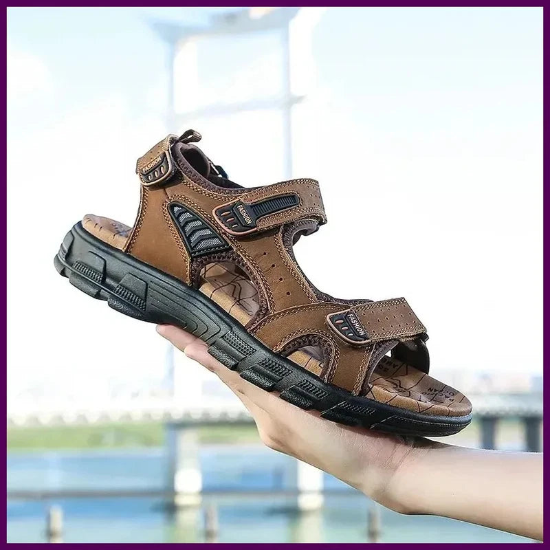 2025 New Genuine Leather Men's Sandals Summer Outdoor Non-slip Hiking