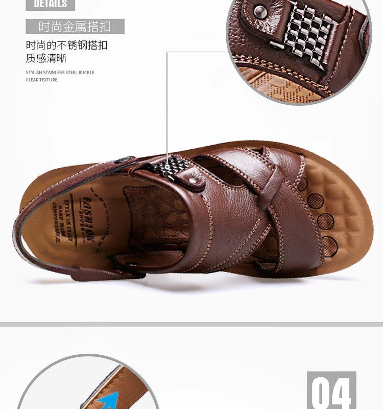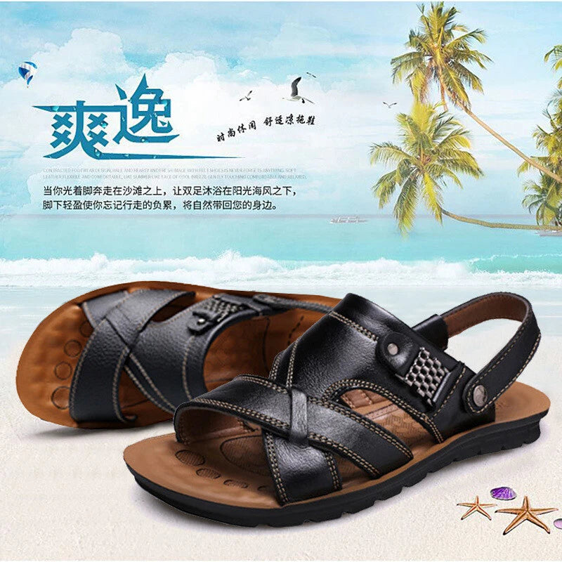 38-48 Summer Open Toe Slippers Sandals Hollow Out Faux Leather Men's Beach Shoes