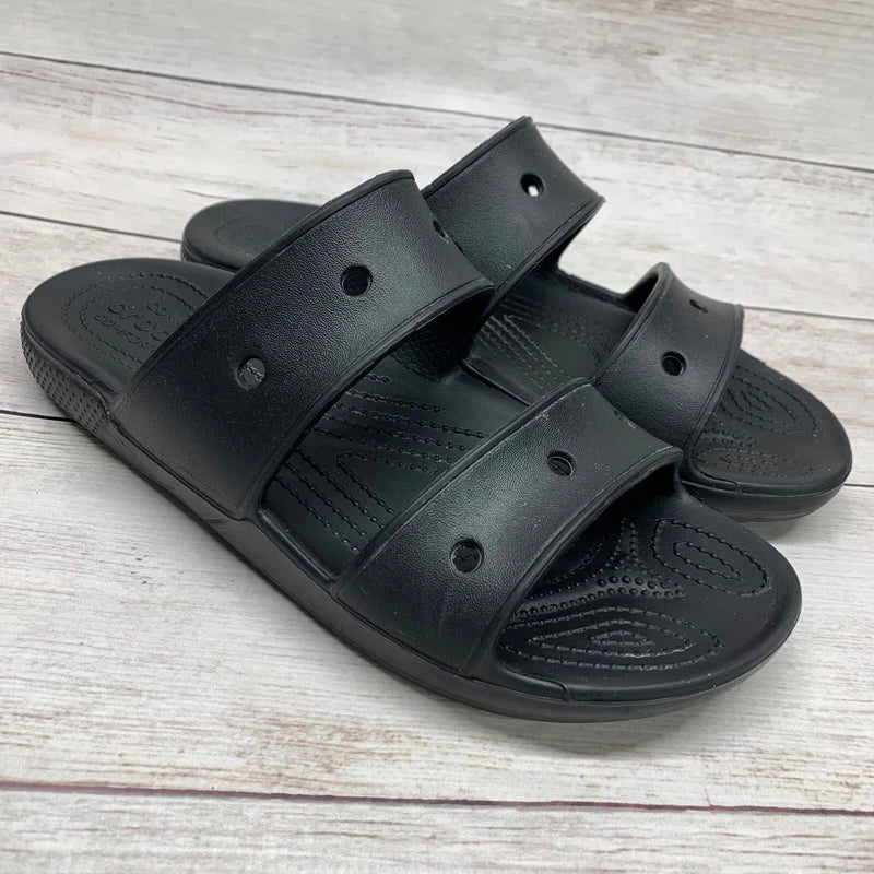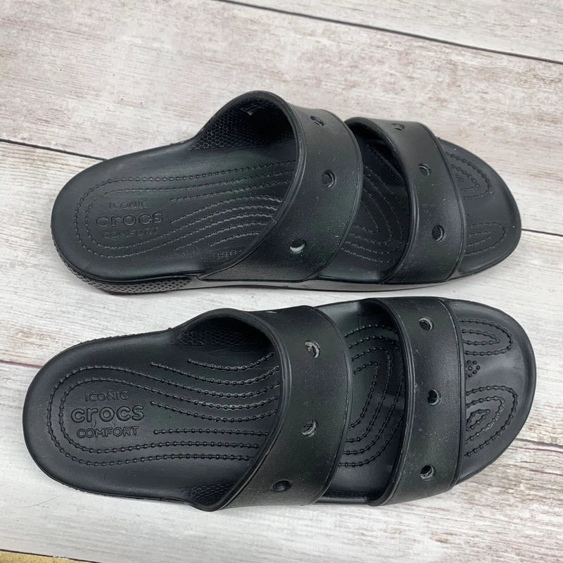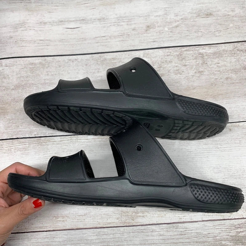 Crocs Sandals Mens Size 9 Womens 11 Black Two Strap Slide Beach Pool Shoes