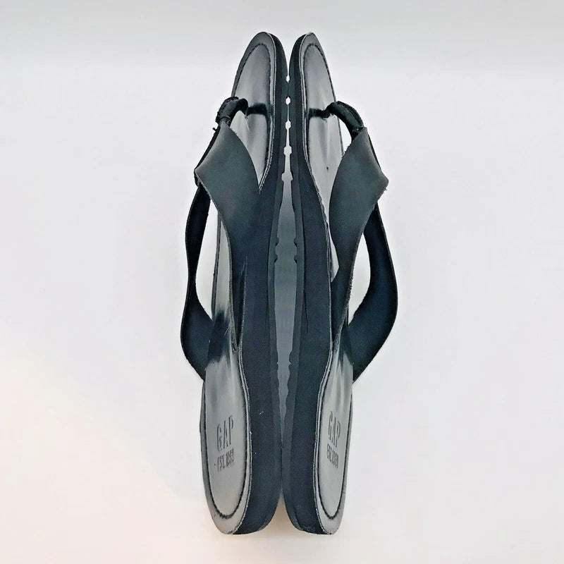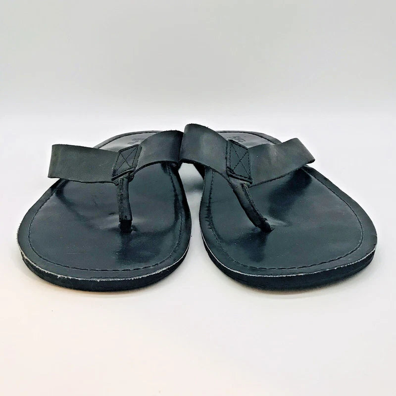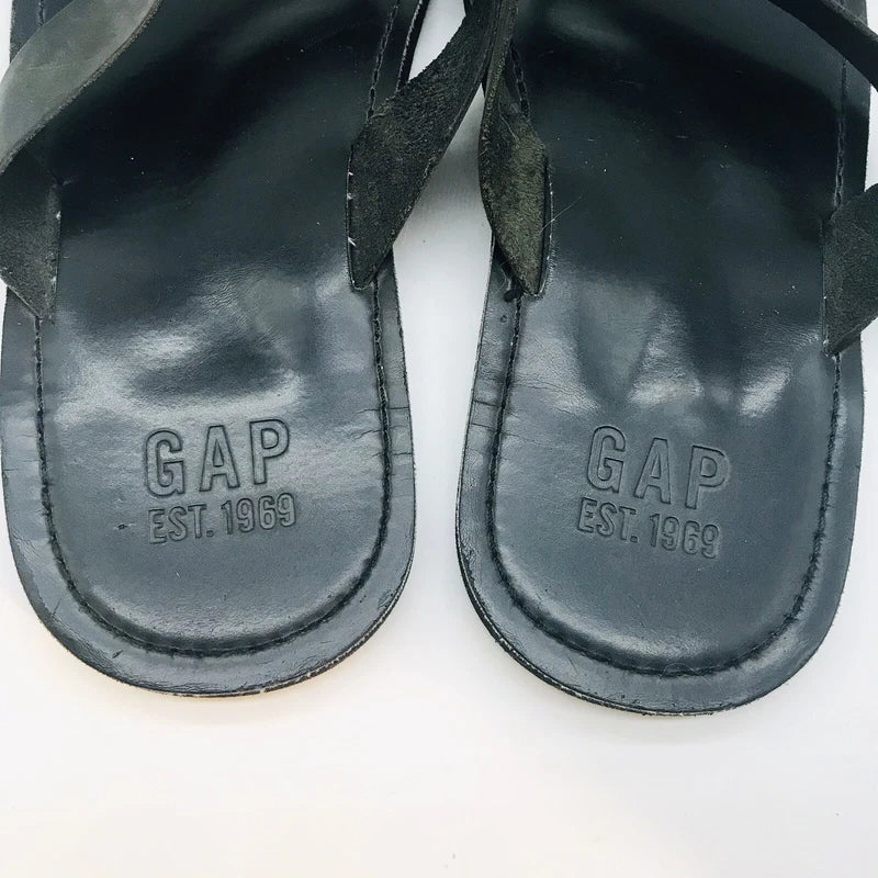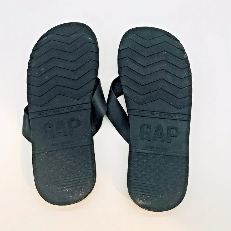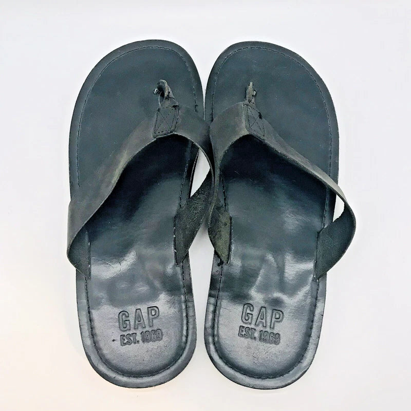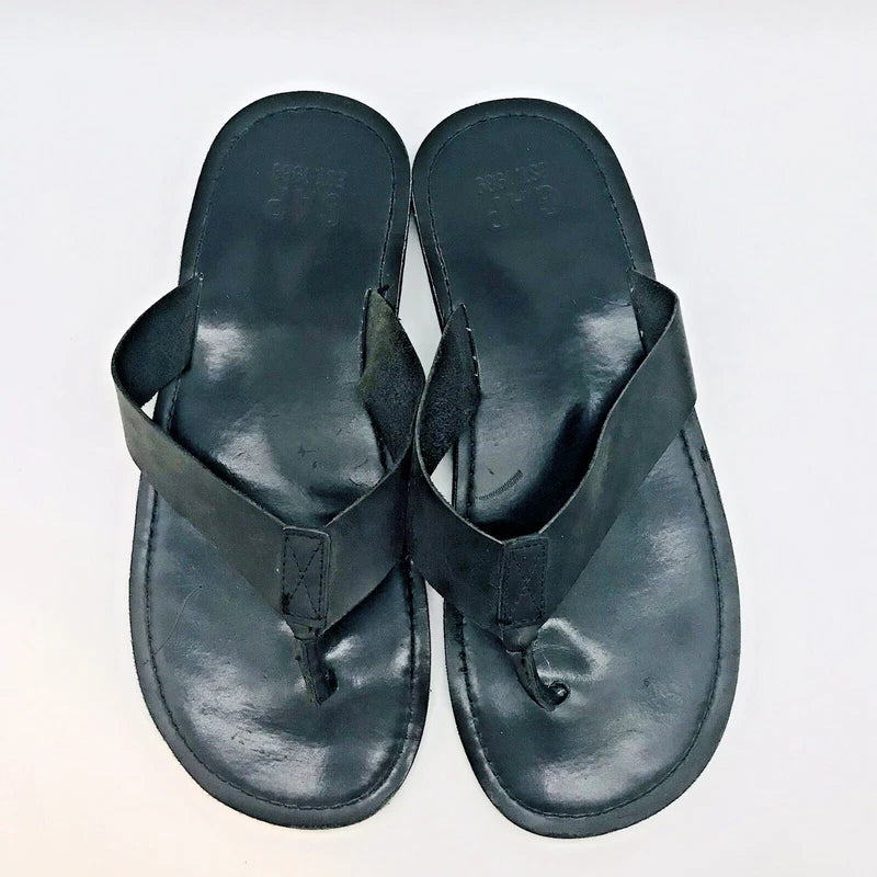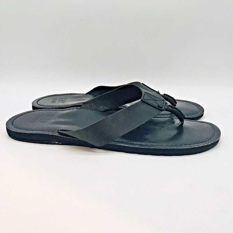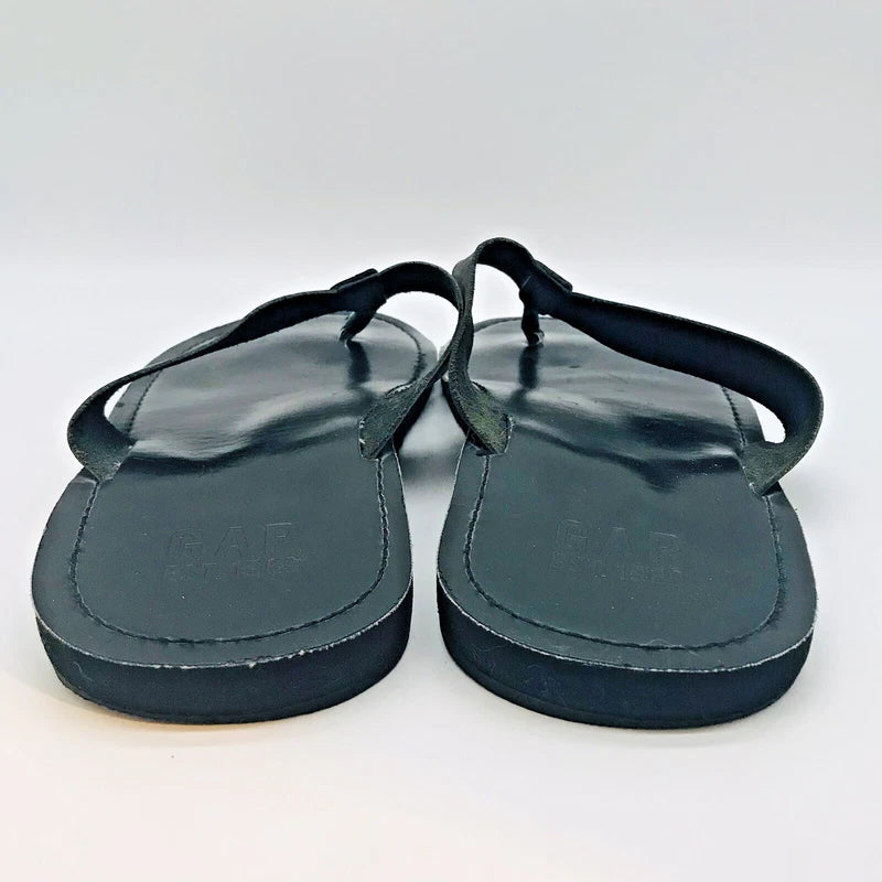 GAP Black Leather Flip Flops Men's 13 Black Thongs Beach Pool Sandals Slippers