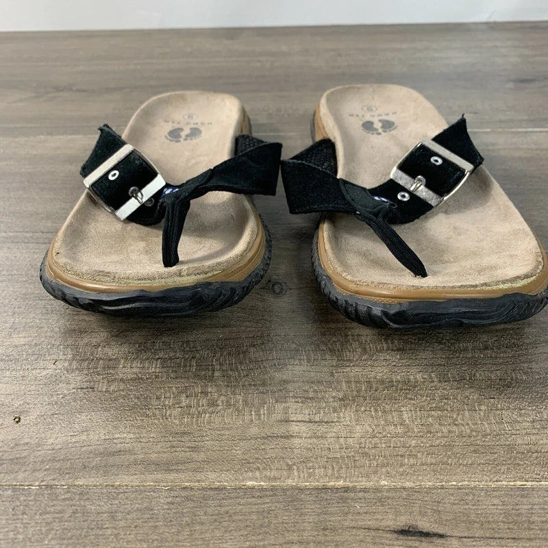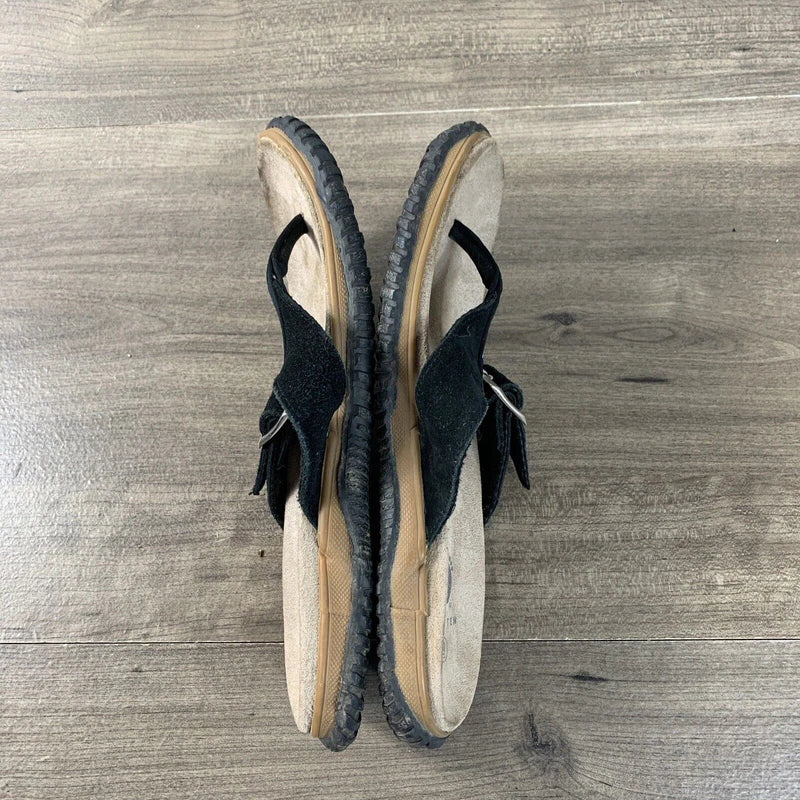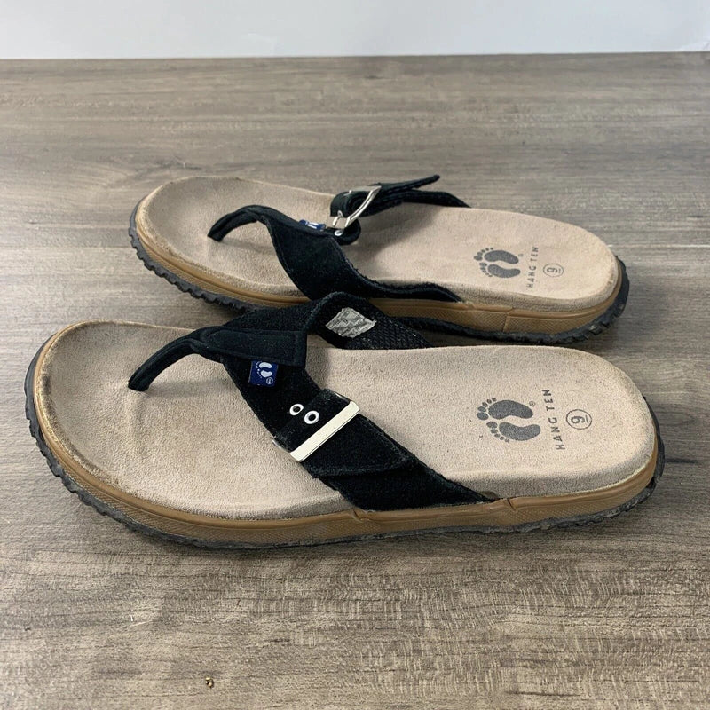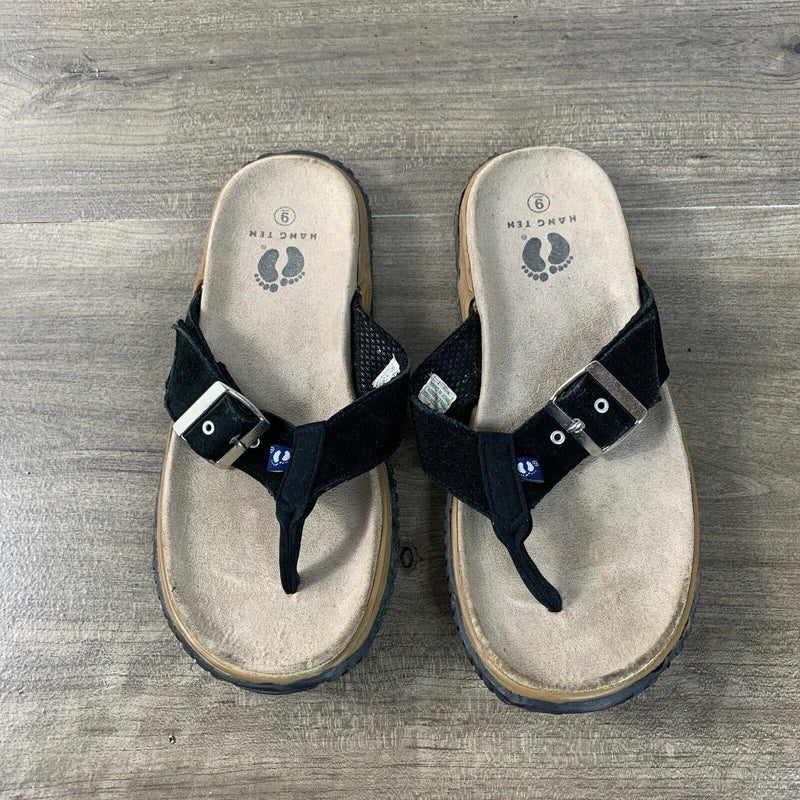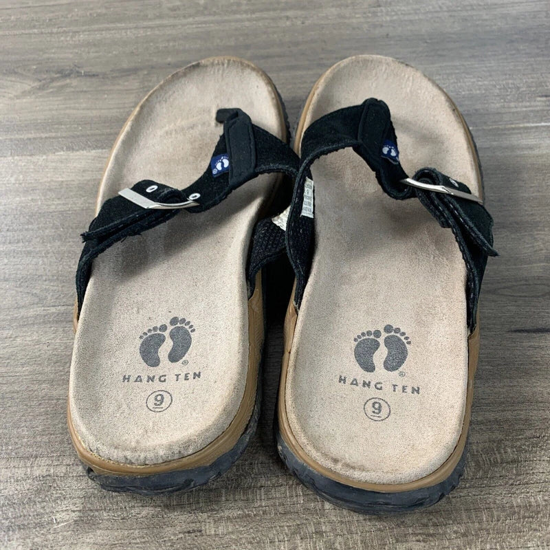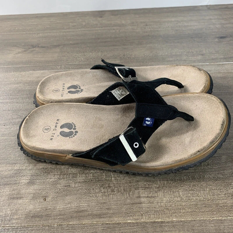 Hang Ten Mens Size 9 Suede Flip Flops Tong Sandals Black Slip On Rubber Soles