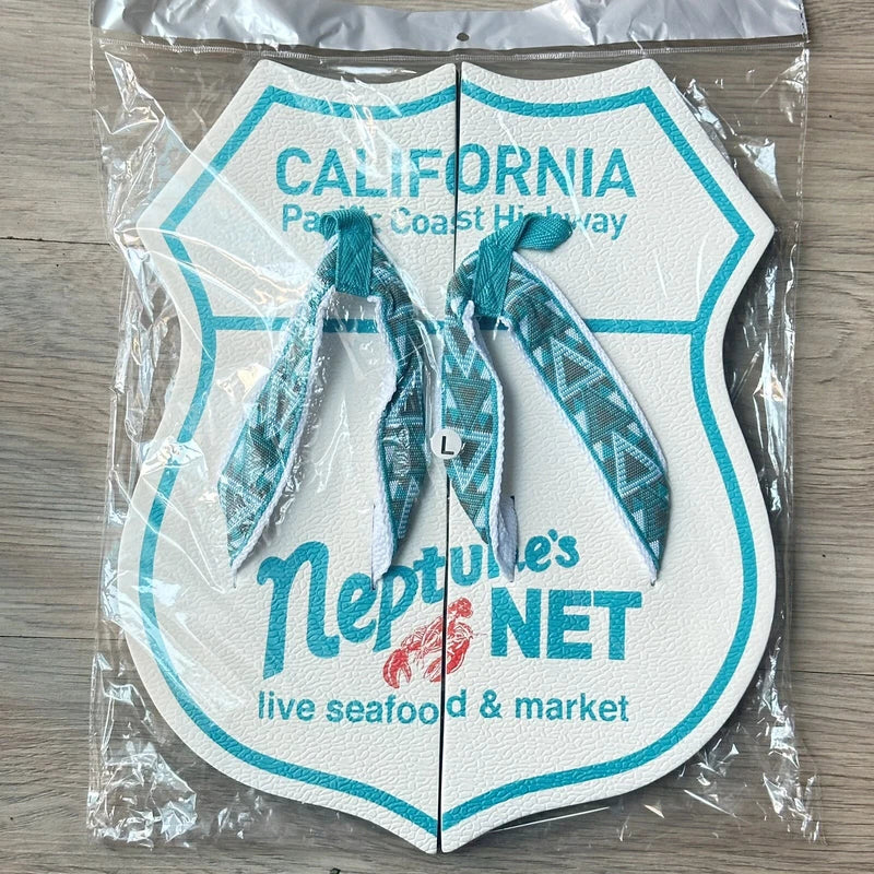 Malibu Neptune’s Net Souvenir Flip Flop Slippers Womens Sz L 9 10 Mens 11 12 13