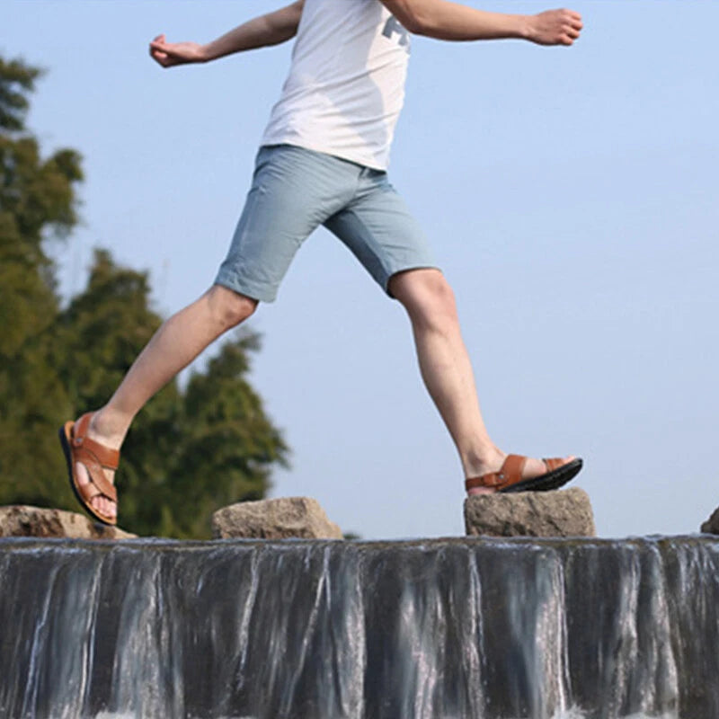 Men Genuine Leather Sandals Summer Casual Sports Beach Shoes Soft Home Slippers