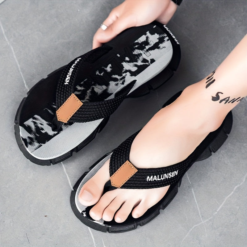 Men'S Fashion Flip-Flops - Summer Non-Slip Thong Sandals with Thick Soft Sole, Comfortable for Daily Wear & Beach Outings, Black & White Striped Design, EVA Material, Perfect for Outdoor Activities, Beach Footwear | Striped Flipflops | EVA Sandals