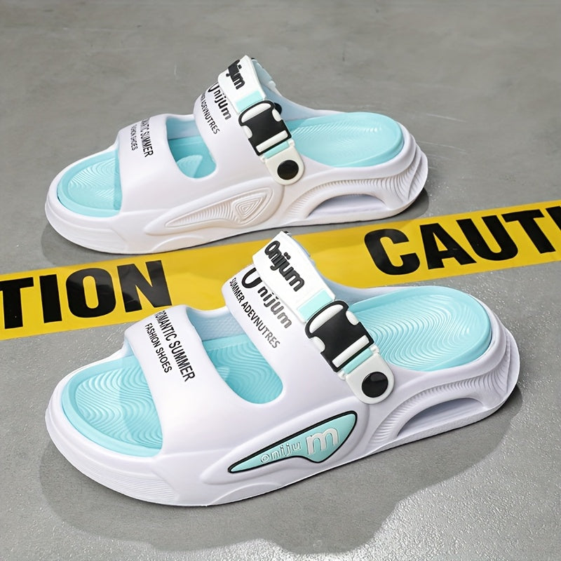 Men'S Lightweight EVA Slide Sandals - Breathable, Non-Slip, Shock-Absorbing Beach & Casual Shoes with Thick Cushioned Sole for Indoor/Outdoor Use, Black & Orange Design, Perfect for Summer, Hiking, and Everyday Comfort, Beach Shoes