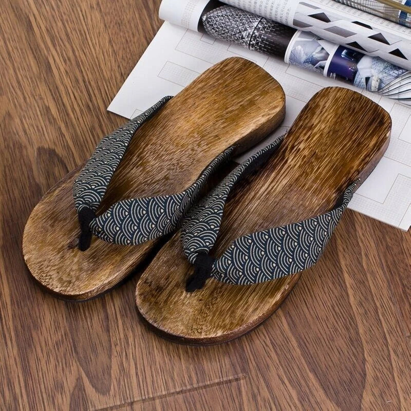 Men Summer Japan Geta Clogs Flip Flops Thong Sandals Wooden Slippers Shoes Beach