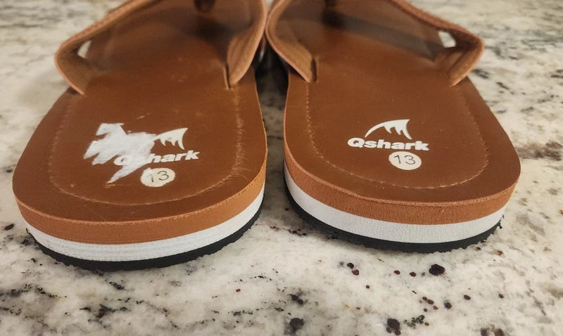 Quickshark Mens Flip Flops Leather Thong Sandals Arch Support Beach Slippers