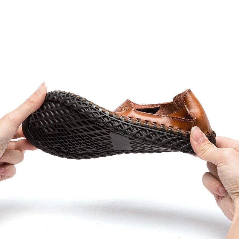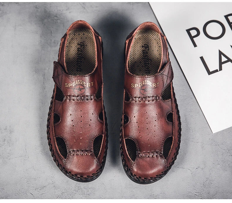 Summer Men Genuine Leather Sandals Beach Slip-on Breathable Soft Slipper