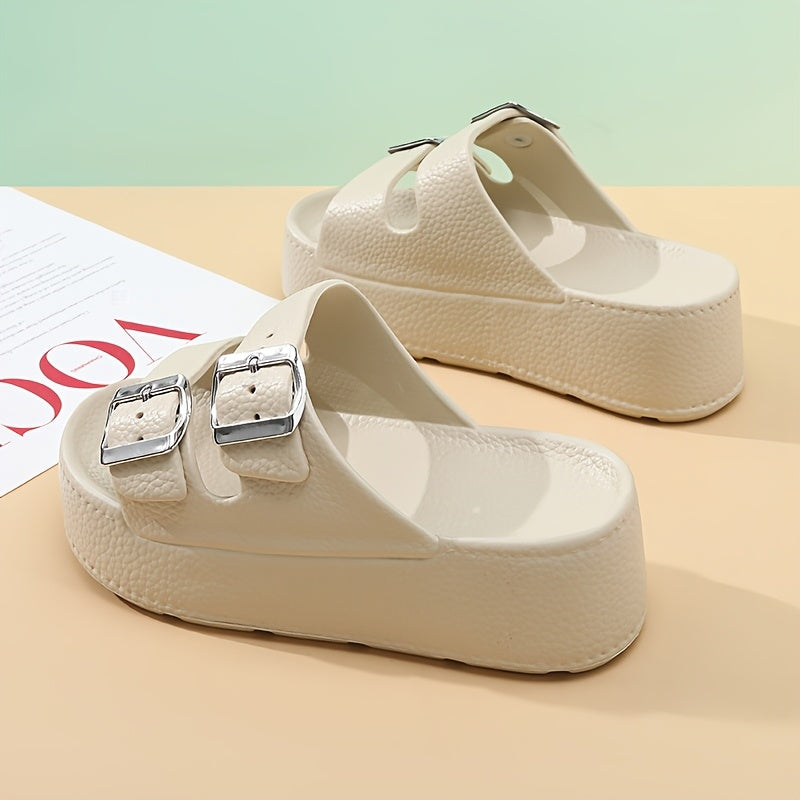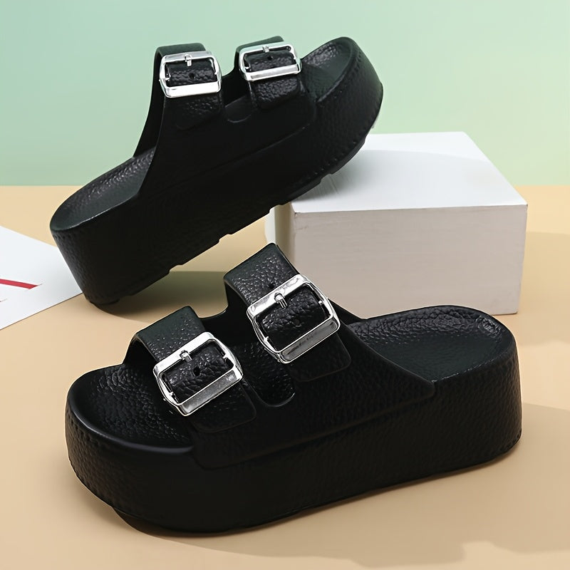 Women'S Summer EVA Slide Sandals - Casual Thick Sole Non-Slip Beach Slippers with Adjustable Buckle Straps, Black, All-Season Comfort for Outdoor & Poolside Use